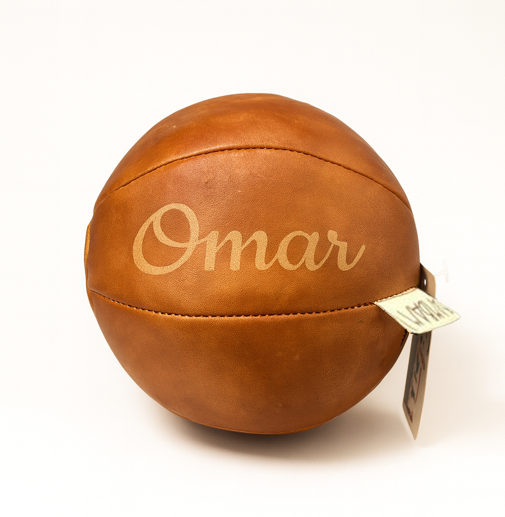 Die Gravur steht auf einer Seite des Balls und hat eine feste Farbe, die gut zum Vintage -Design passt. Der personalisierte Babybasketball ist daher nicht nur praktisch, sondern auch stilvoll und sinnvoll.