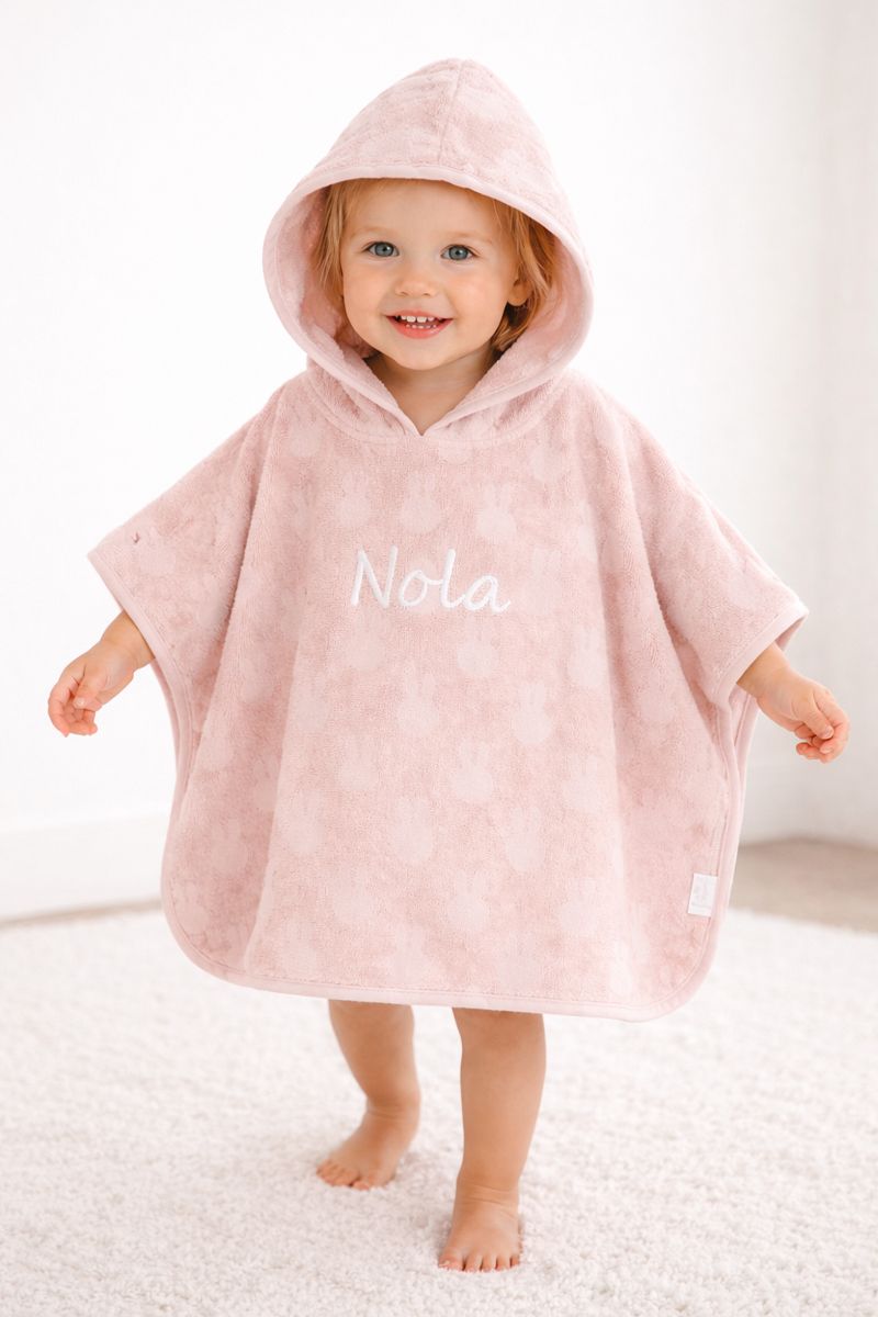 Miffy Poncho Rosa mit Namen – Weicher und persönlicher Frotteeponcho für Kinder