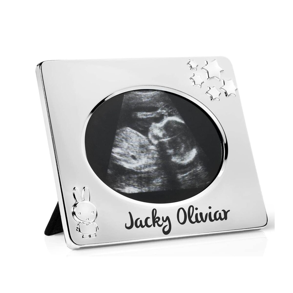 Behalten Sie die Erinnerung an Ihren ersten Ultraschall mit dem Echo-Fotorahmen Miffy mit Namen . Dieser glänzende Fotorahmen, verziert mit süßer Miffy und Sternen am Rand, ist eine perfekte Möglichkeit, Ihr Ultraschallfoto zu präsentieren. Der Miffy-Fotorahmen ist versilbert und lackiert, sodass die Wartung einfach ist und Sie sich keine Gedanken über die Reinigung machen müssen.