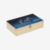 El nombre o texto que elijas se imprimirá directamente en la madera de la tapa del estuche. Puedes elegir entre varios diseños, que personalizaremos con esmero. Para el acabado, puedes elegir entre un acabado brillante o mate. Gracias al barniz resistente a los rayos UV, la impresión se mantendrá hermosa y duradera durante años.