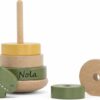 De houten stapeltoren dino met naam is een vrolijk en tijdloos speelgoed dat perfect past in elke kinderkamer. Door de kleurrijke houten ringen te stapelen op de wiebelende basis worden kinderen spelenderwijs uitgedaagd.
