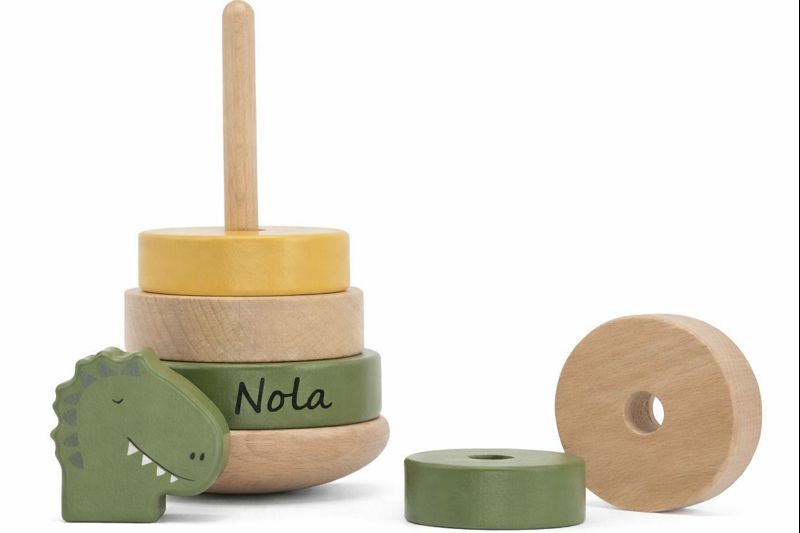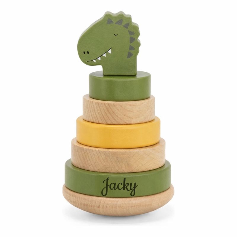 De houten stapeltoren dino met naam is een duurzaam, leerzaam en persoonlijk cadeau
