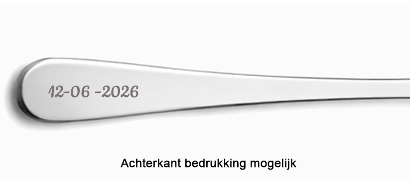 Het kinderbestek ruimte met naam is gemaakt van hoogwaardig roestvrij staal. Dit materiaal is sterk, hygiënisch en geschikt voor dagelijks gebruik. Daardoor blijft het bestek lang mooi en is het ideaal voor kinderen die zelfstandig leren eten.