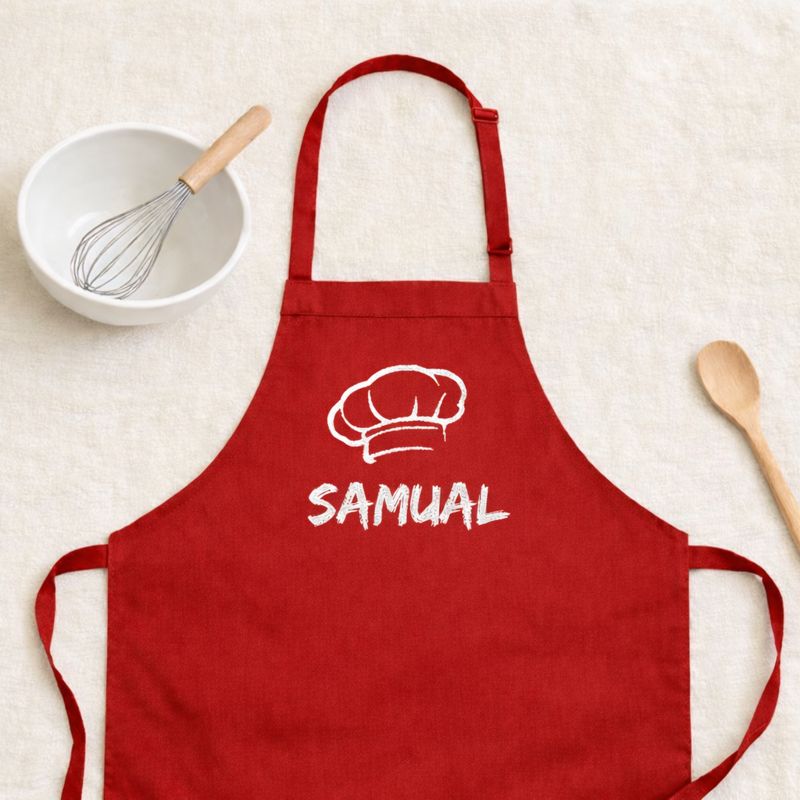 Dit gepersonaliseerde keuken schort is ideaal als cadeau voor een verjaardag, feestdag of gewoon als verrassing voor kleine kookliefhebbers.
