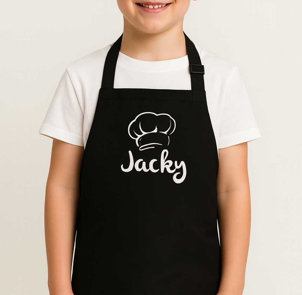 Gepersonaliseerd keukenschort voor kinderen met naam of tekst