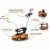 De loopauto beschikt over een werkend stuur met muziek en claxon, brede stabiele wielen met sportieve velgen en een handig opbergvak onder het zitje voor kleine spulletjes of knuffels. Daarnaast bieden de verstelbare platforms en armleuningen extra veiligheid en comfort tijdens het spelen.