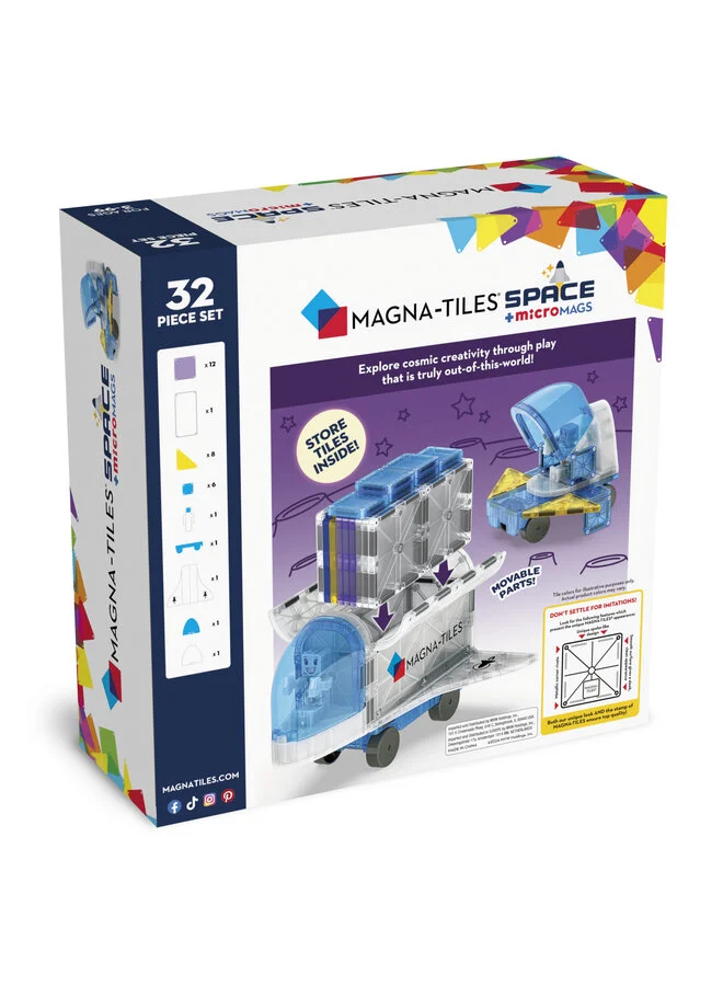 De Magna Tiles Space set met 32 stuks is ideaal magnetisch speelgoed voor kinderen die houden van bouwen en ontdekken. Met deze ruimte bouwset maken kinderen eenvoudig raketten, shuttles en creatieve constructies. Dit bouw speelgoed stimuleert fantasie en ontwikkeling.