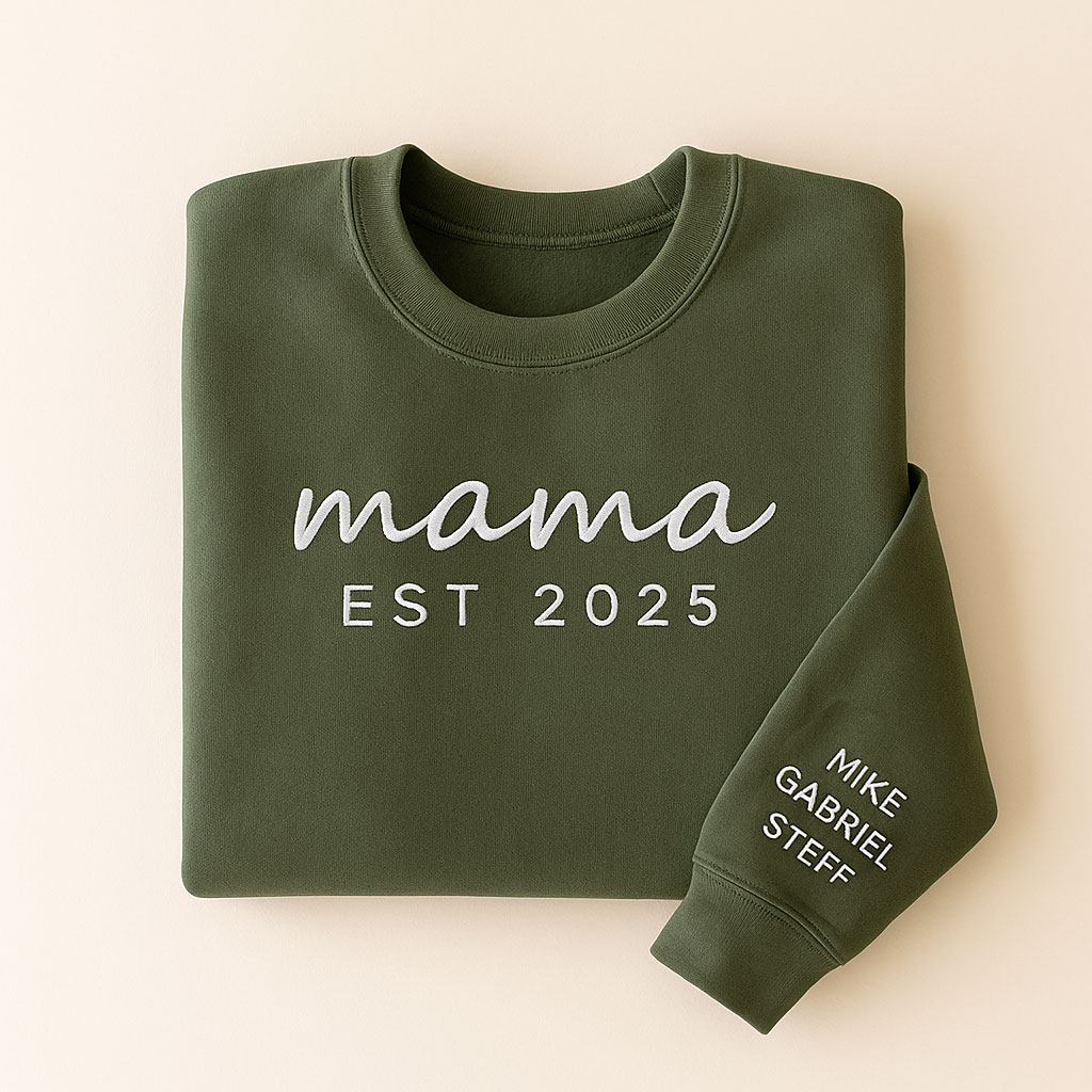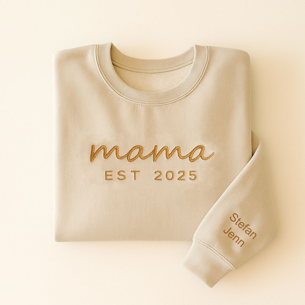 Verras een trotse mama met deze persoonlijke Sweater Mama, een uniek kledingstuk dat warmte, liefde en stijl combineert. Op de voorkant prijkt het woord “Mama” in elegante letters, met daaronder de optie om een jaartal toe te voegen. Denk bijvoorbeeld aan est. 2025, het jaar waarin ze voor het eerst mama werd, of haar eigen geboortejaar. Zo geef je de sweater een extra betekenisvolle touch die haar altijd zal herinneren aan dat bijzondere moment.