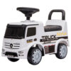 Mercedes vrachtwagen loopauto met naam is verkrijgbaar in diverse kleuren bedrukking en verschillende lettertypes en wordt standaard bedrukt op beide achterkanten van de auto