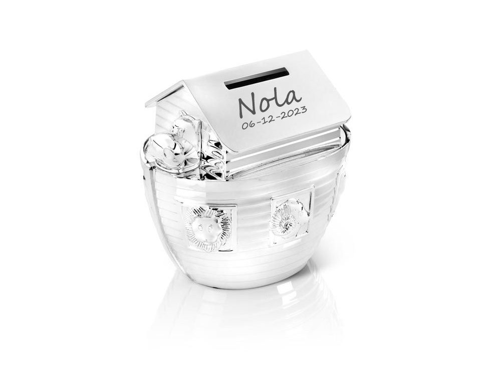 Verzilverde Spaarpot Noah’s Ark met Naam – Een Betekenisvol en Persoonlijk Cadeau