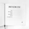 Het boek biedt ruimte om de naam van je kindje in te vullen en de geboorte-informatie op te schrijven, inclusief een plek om het geboortekaartje in te plakken. Er is ook speciale aandacht voor de eerste week na het overlijden van je kindje, met zeven pagina’s waarop je de gebeurtenissen van elke dag kunt omschrijven.